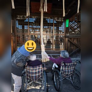 暖かい日に近くの八幡神社へ初詣に出かけました。