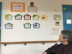 元旦はおせち料理を食べ、絵馬作りや書初めを行いました。