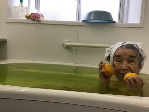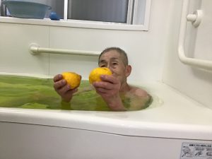 湯船にゆずを浮かべてゆずのいい香りや趣きを楽しまれていました☺️
