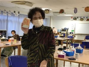 皆さん、思い思いの柄を選ばれ、コーティングし、飾り付けをする事で、同じ牛乳パックからでも様々な個性溢れるペン立てが出来上がりました😚